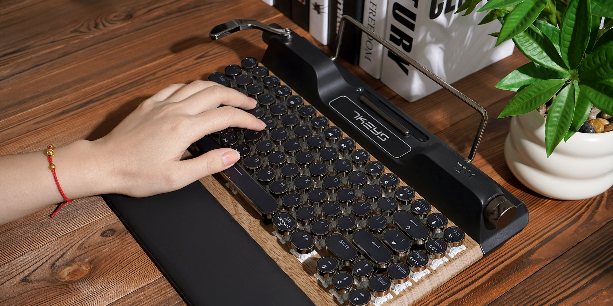 Classic typewriter-style keyboard that combines vintage charm with modern functionality.With tactile feedback and satisfying clicky keys, typing feels truly enjoyable.