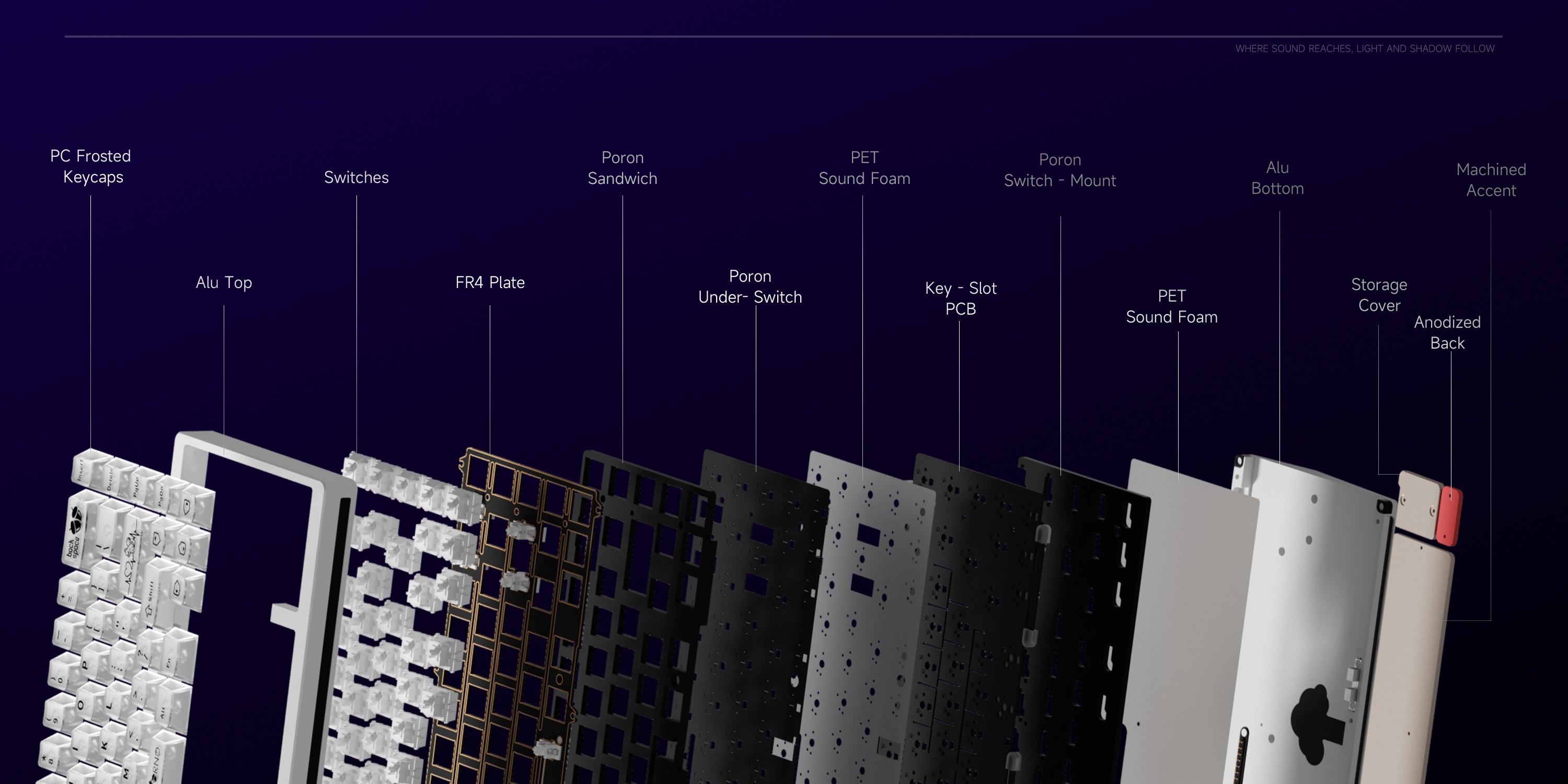 Dual Gasket Structure. Compared with a traditional PCB-mounted gasket, the plate-mounted gasket delivers softer and more elastic feedback, along with consistent acoustics and a satisfying typing feel. Both structures can be freely switched and customized, offering versatile setups and a deeper experience of the true fun of custom keyboards.
