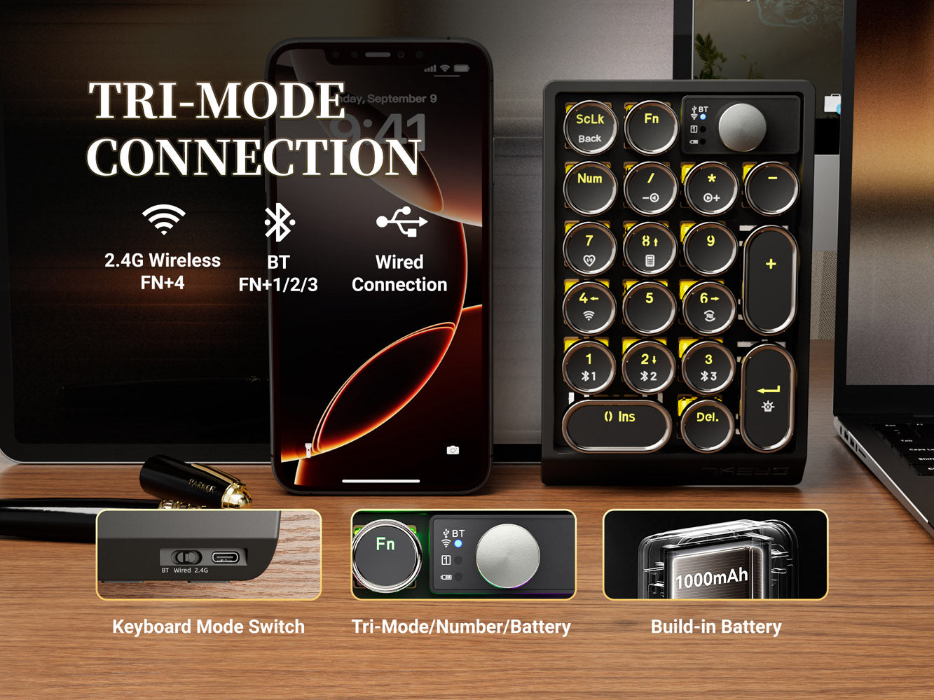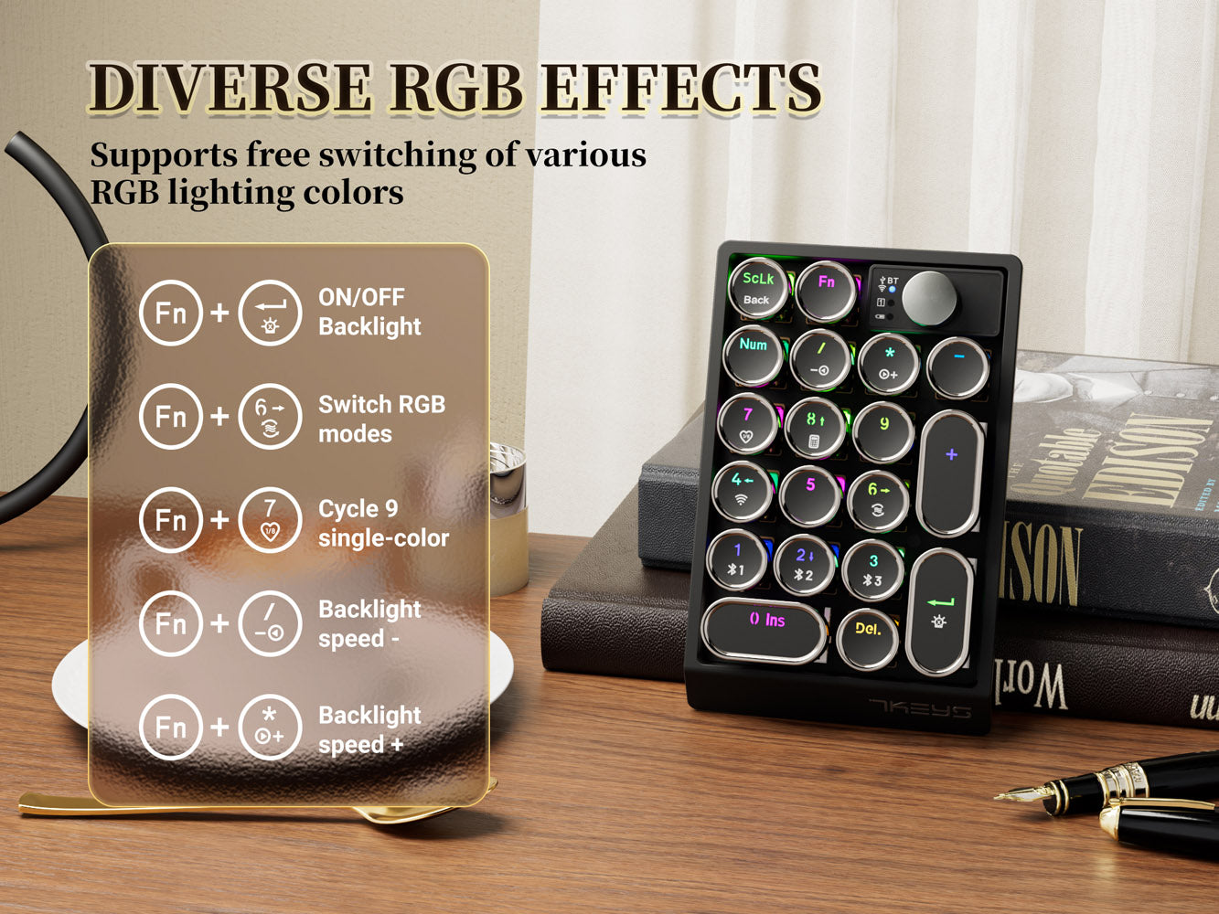 Working late doesn't have to be boring. Bring your workspace to life with the TW1800’s dynamic RGB ambient backlighting. With just a few simple keystrokes, you can instantly cycle through multiple immersive lighting effects, switch between 9 solid colors, or adjust the speed to match your mood. It’s not just a numpad; it’s the centerpiece of your aesthetic desk setup.