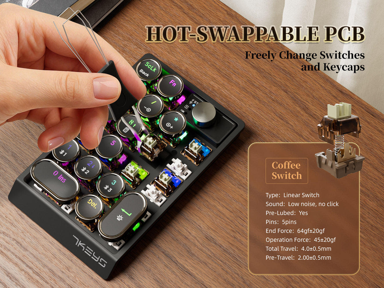 Don't settle for a typing feel you don't love. The TW1800 is built with a premium fully hot-swappable PCB, meaning you can easily swap out mechanical switches without any soldering or technical skills. Whether you crave a satisfying click, a tactile bump, or a smooth linear glide, you have the total freedom to customize the sound and feel of every single key in seconds.