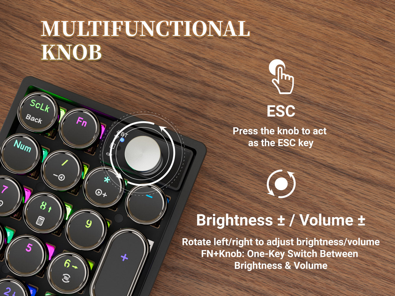 Tired of losing your focus just to adjust the volume or navigate through menus? The TW1800 puts essential controls exactly where you need them. With a quick spin of the multifunctional knob, you can seamlessly adjust system volume or RGB brightness on the fly. Need to cancel an action quickly? Just press the dial to trigger the ESC key. Complete control, zero distractions.