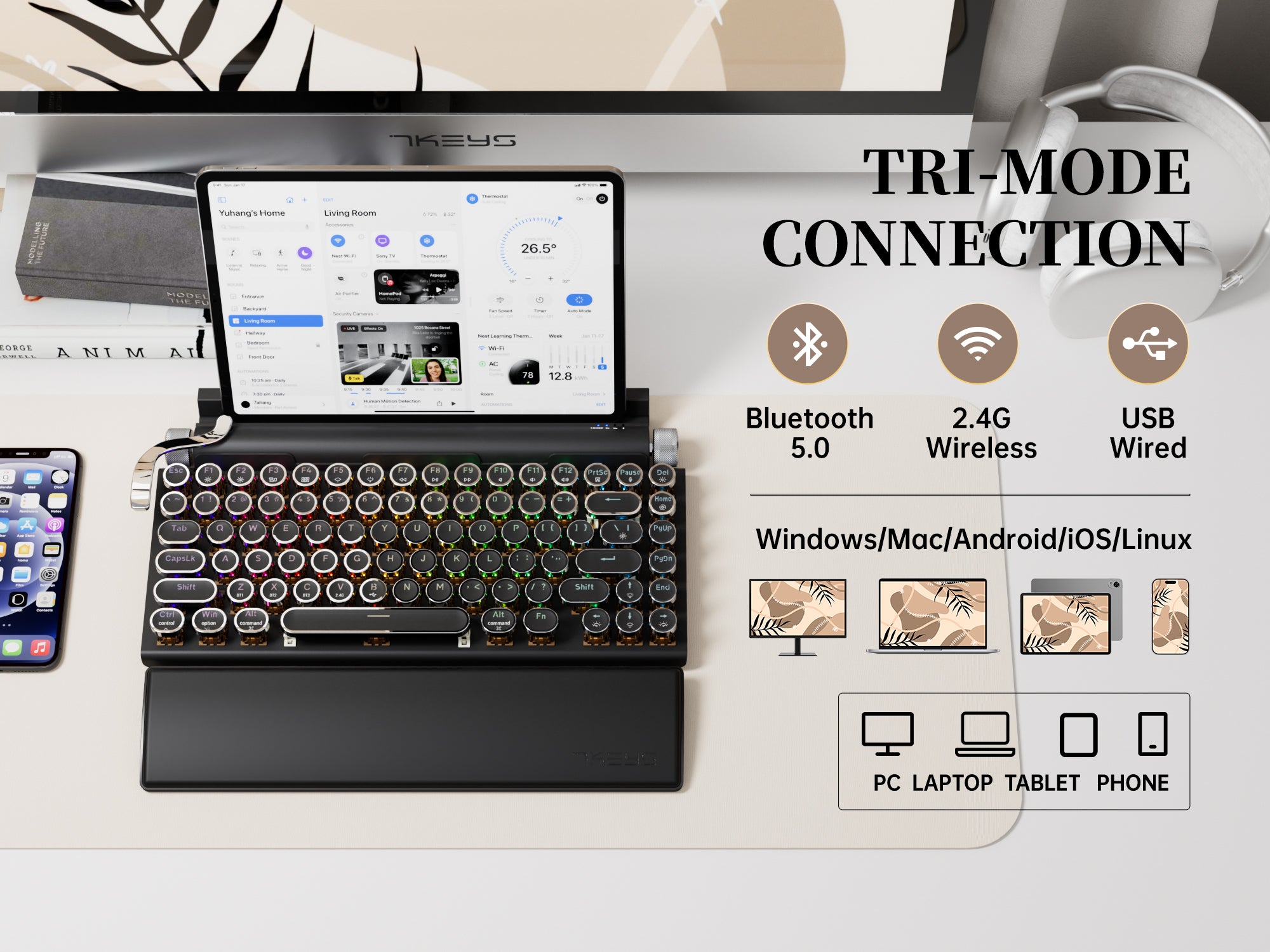 Why juggle multiple keyboards? Control your entire digital world with one device. Instantly switch between Bluetooth 5.0 for tablets, ultra-fast 2.4G wireless for desktops, or reliable USB-C wired mode. Whether you’re on Mac, Windows, or Android, adapt to any workflow without skipping a beat.