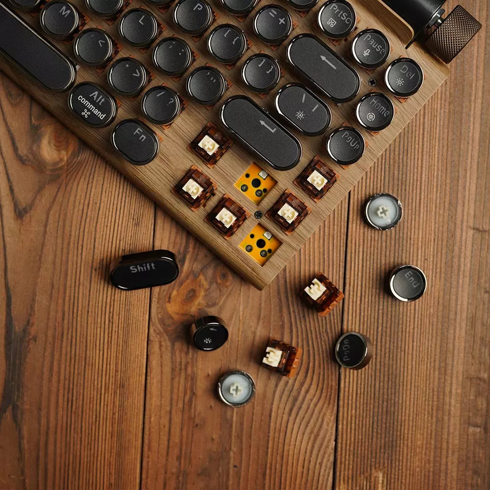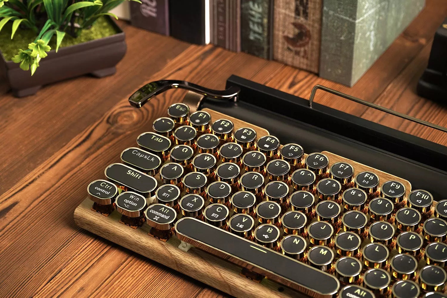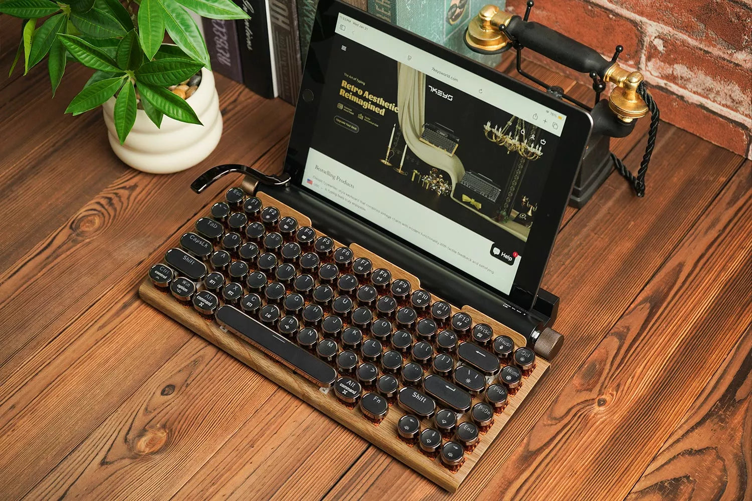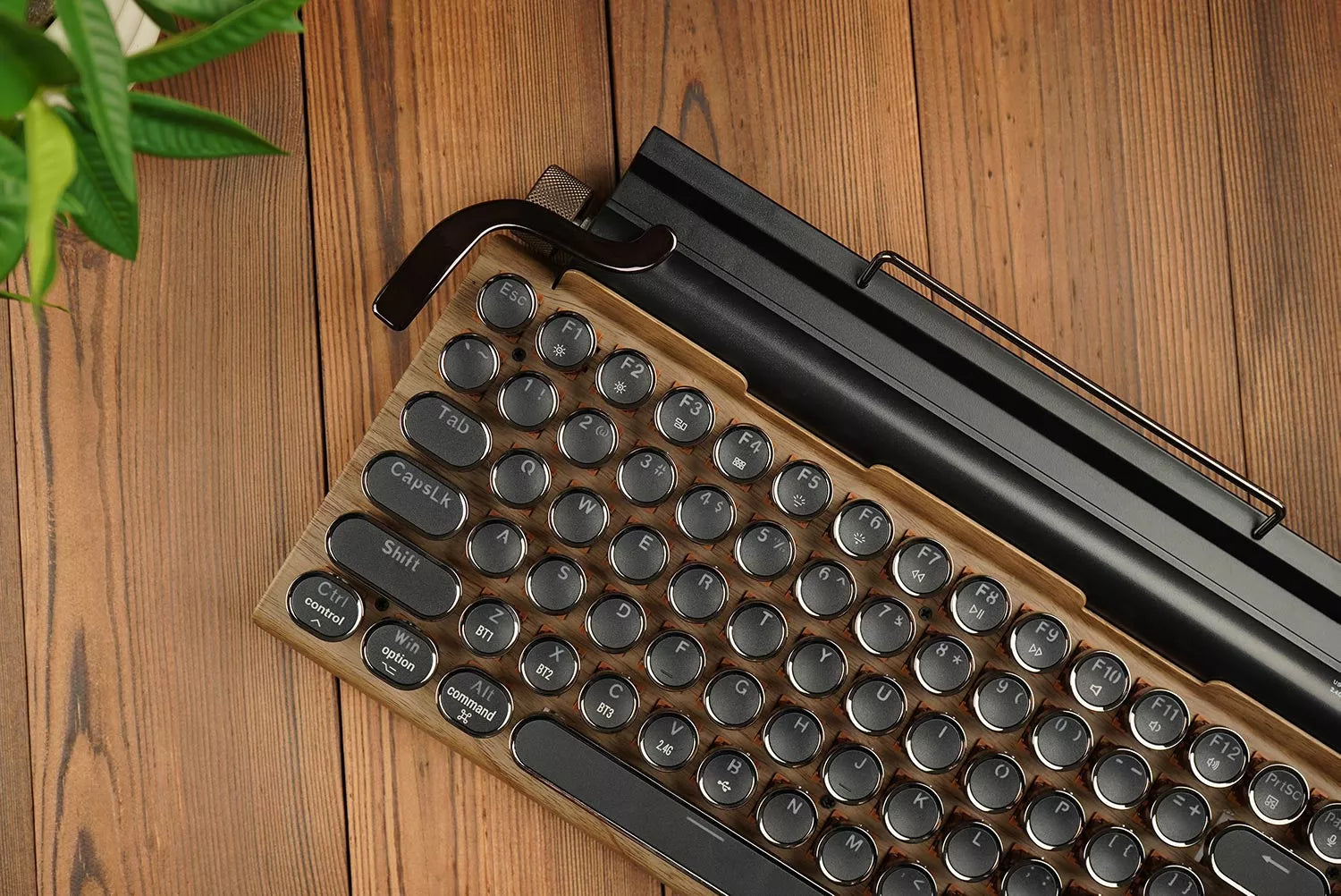 - The Return Lever: Pull the lever to cycle through 14+ dynamic backlight modes. It mimics the carriage return of a real vintage typewriter.