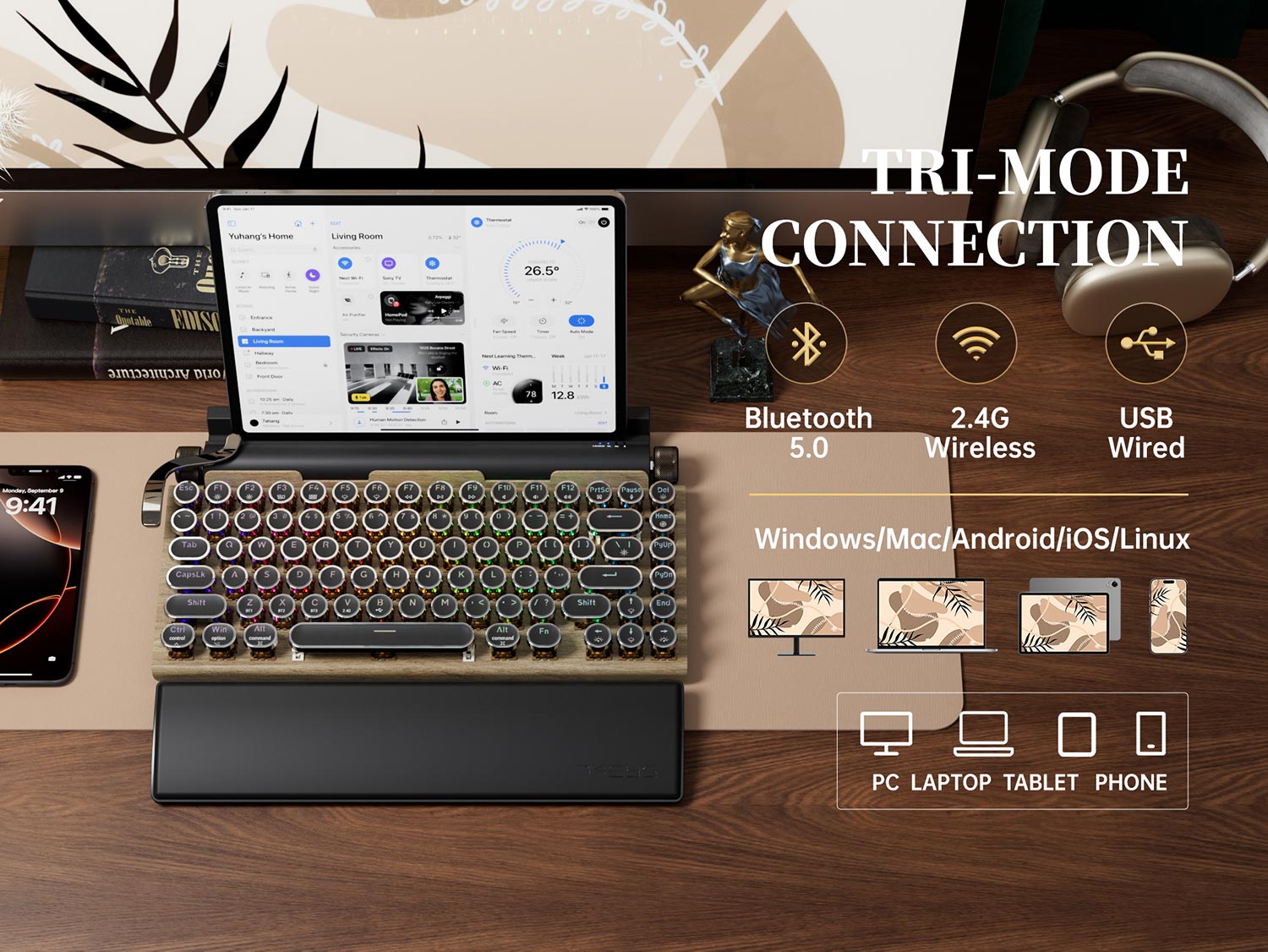Why juggle multiple keyboards? Control your entire digital world with one device. Instantly switch between Bluetooth 5.0 for tablets, ultra-fast 2.4G wireless for desktops, or reliable USB-C wired mode. Whether you’re on Mac, Windows, or Android, adapt to any workflow without skipping a beat.